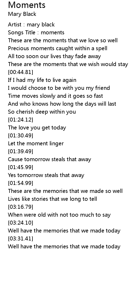 | [00:10.24] | Songs Title:moments |