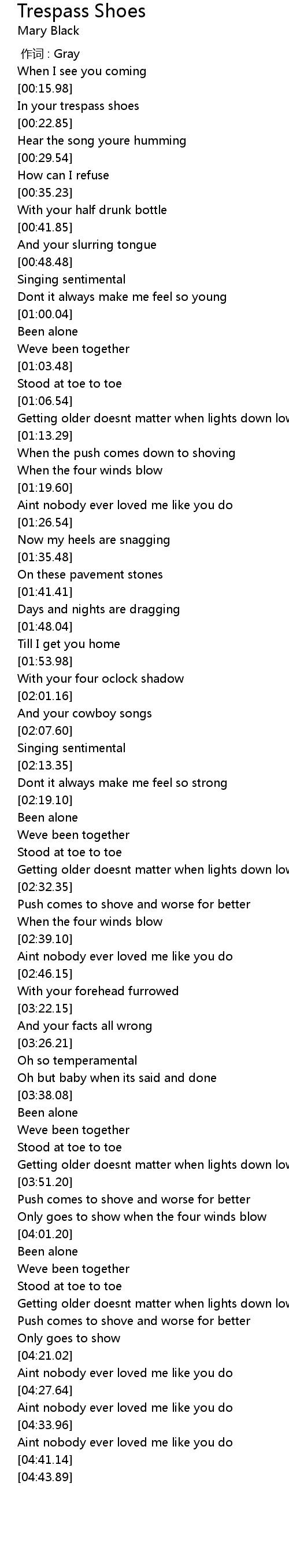| [04:22.27] | Aint nobody ever loved me like you do |