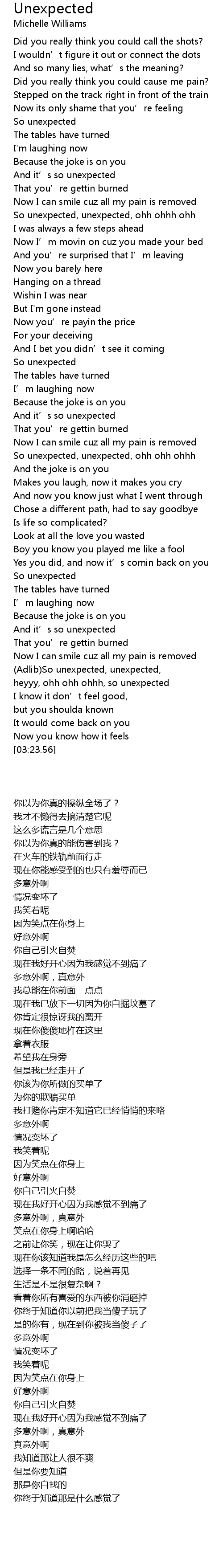 | [03:00.90] | Adlib So unexpected, unexpected, |