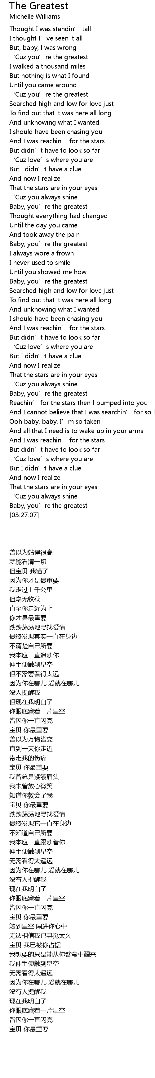 | [03:22.42] | Baby, you’re the greatest |