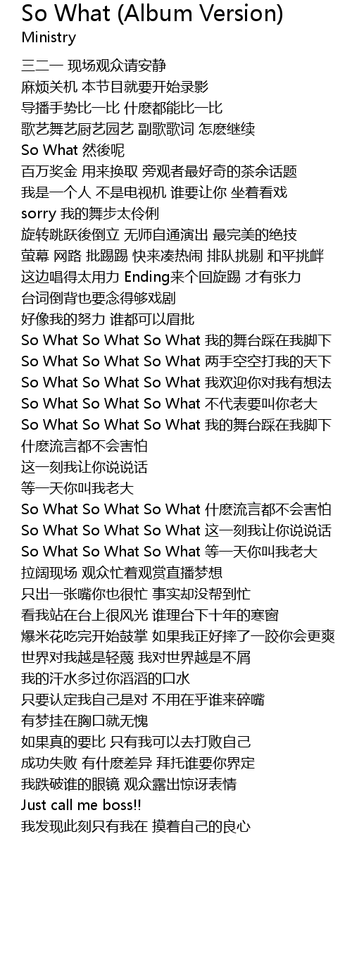 | So What So What So What zhè yī kè wǒ ràng nǐ shuō shuō huà | |