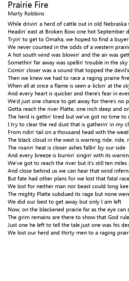 We never counted in the odds of a western prairie fire |
