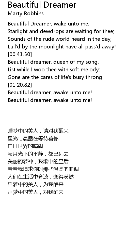 | [01:34.08] | Beautiful dreamer, awake unto me! |