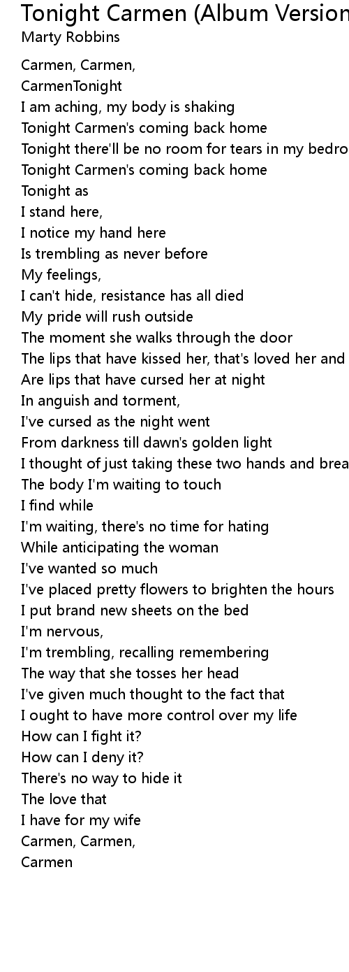 Tonight Carmen's coming back home |