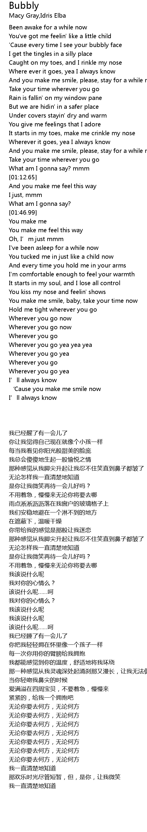 | [00:13.03] | ' Cause every time I see your bubbly face |