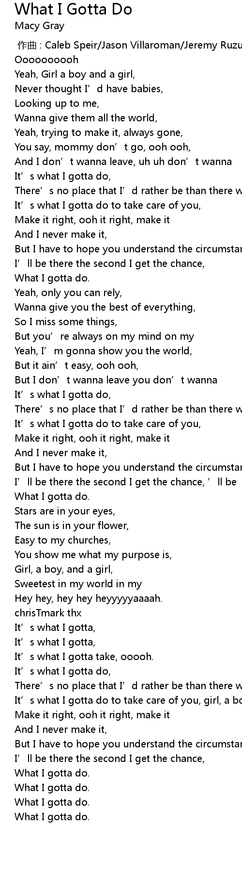 | [01:38.79] | What I gotta do. |