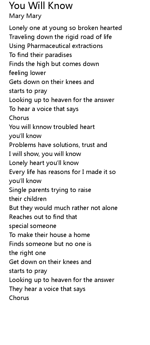 You Will Know Lyrics