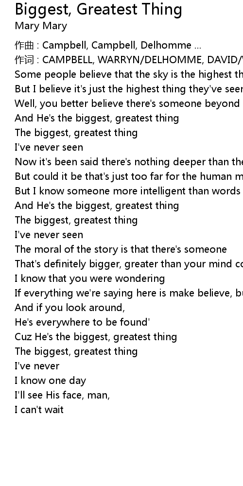| Cuz He's the biggest, greatest thing | |