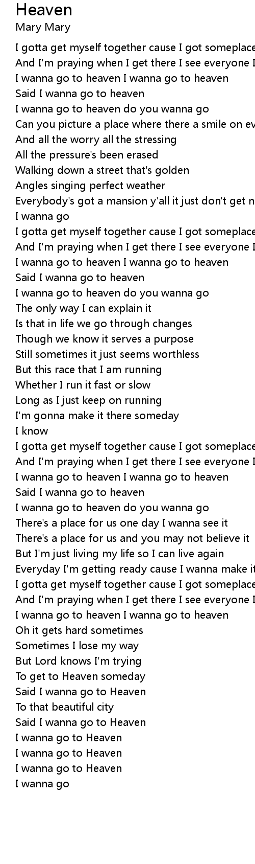 | [00:19.89] | I wanna go to heaven I wanna go to heaven |
