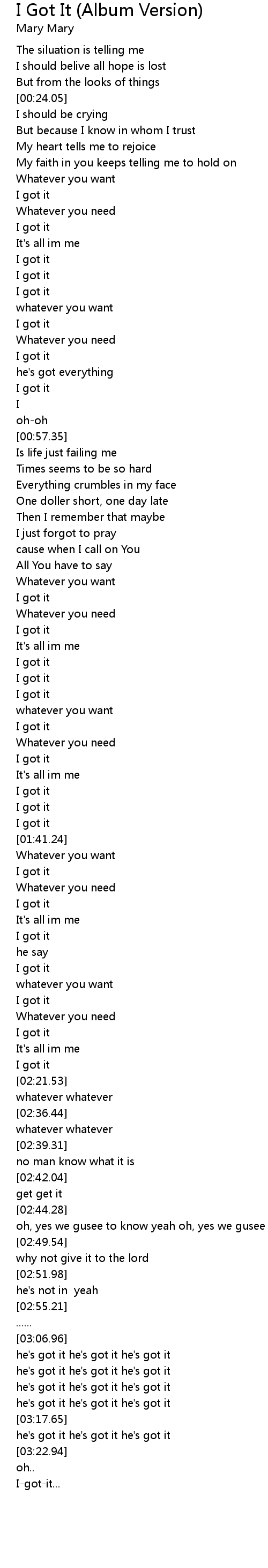 | [03:20.07] | he's got it he's got it he's got it |