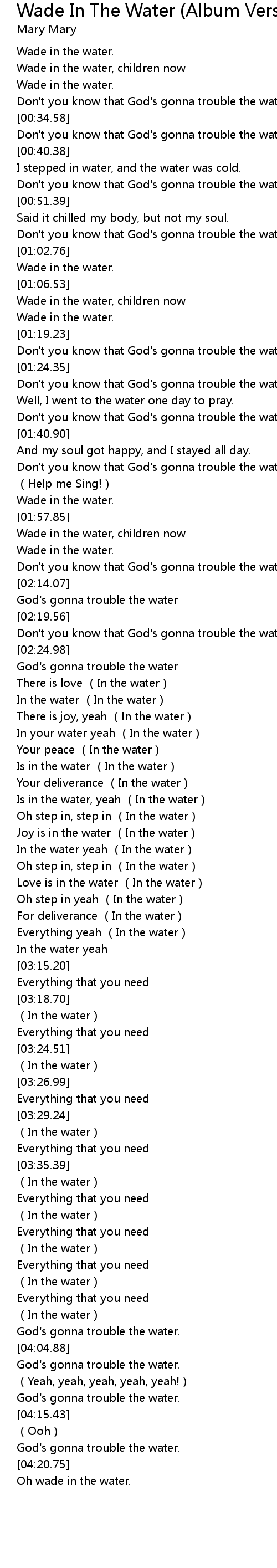 | [04:17.50] | God's gonna trouble the water. |