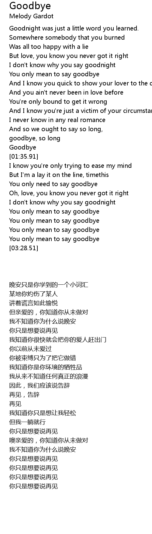 You only mean to say goodbye |
