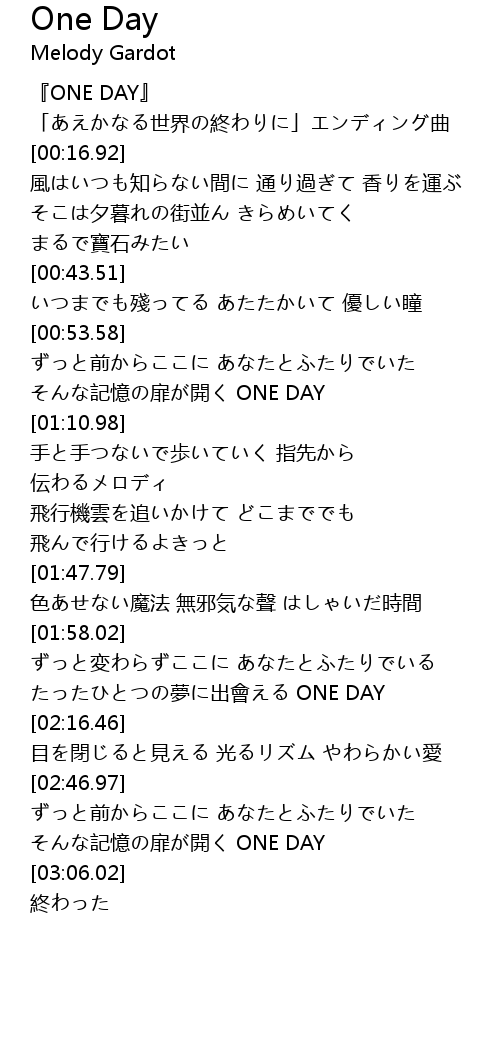 | [00:00.65] | ONE DAY |