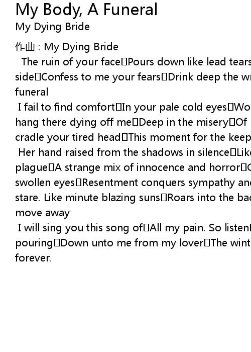 | Song | My Body, A Funeral |
