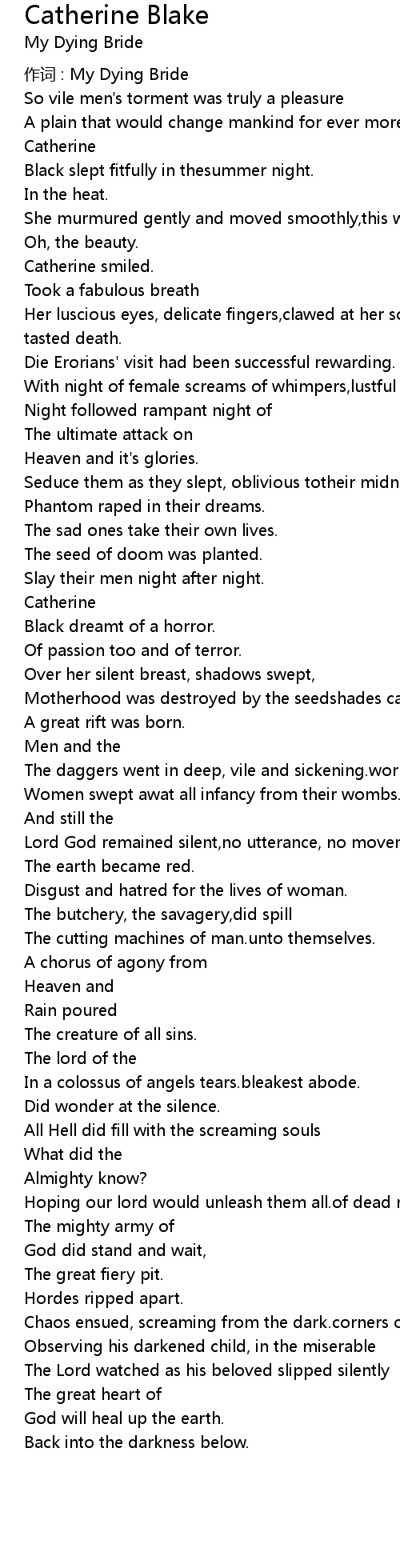 | Her luscious eyes, delicate fingers,clawed at her sodden bed.of summer air and tasted death. | |