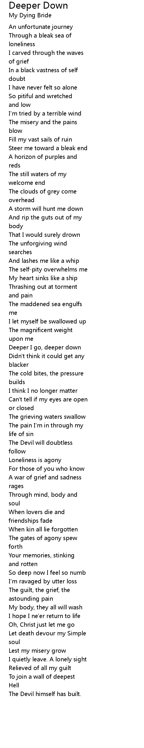 Deeper I go, deeper down |