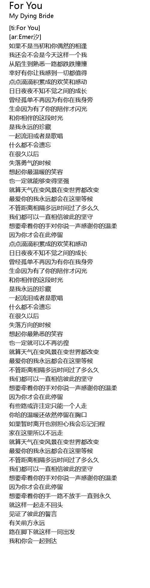 | [04:03.641] | yīn wèi nǐ cái huì zài cǐ tíng liú |