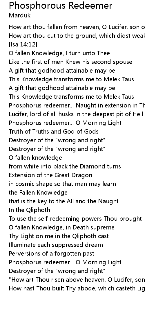 | Phosphorus redeemer... O Morning Light | |
