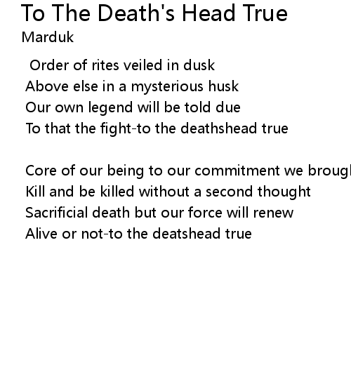 | Song | To The Death's Head True |