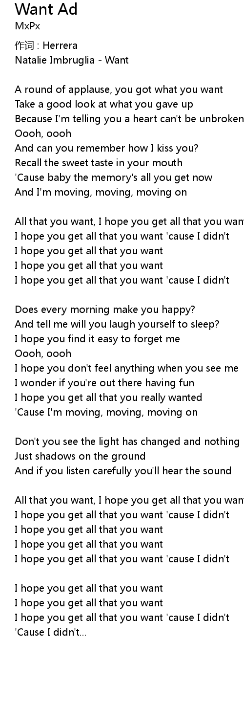 | I hope you get all that you want ' cause I didn' t | |