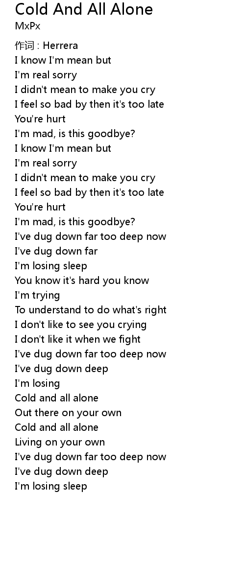 | Song | Cold And All Alone |