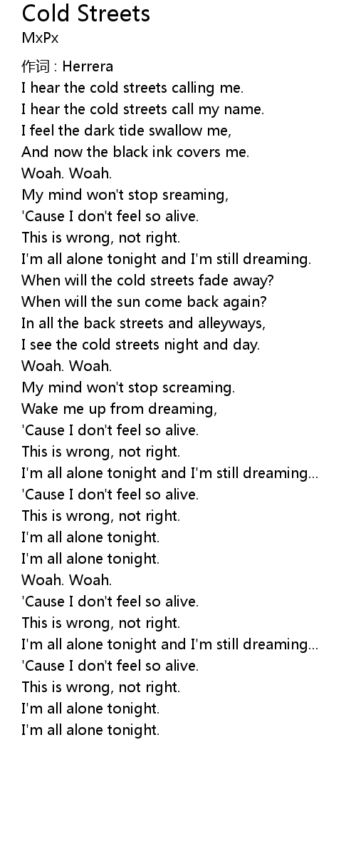 | I hear the cold streets call my name. | |