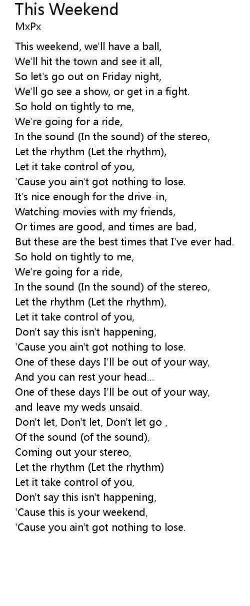 | 'Cause this is your weekend, | |
