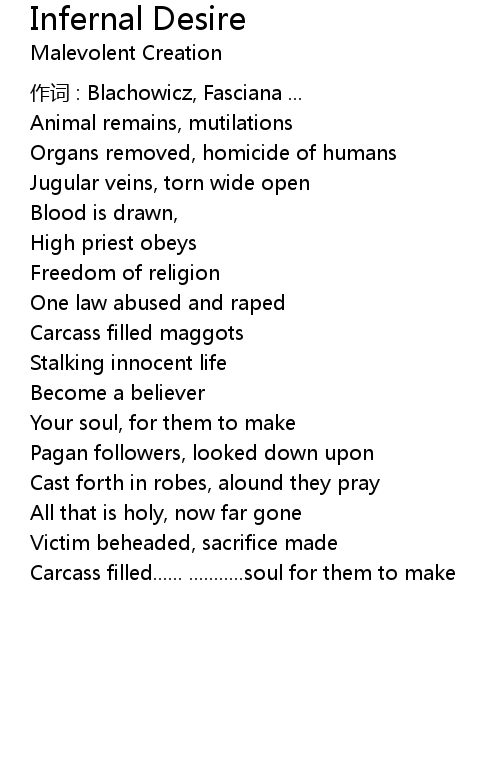 | Song | Infernal Desire |