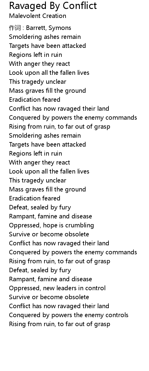 | Song | Ravaged By Conflict |