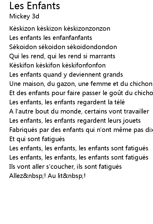 | Les enfants, les enfants, les enfants sont fatigué s | |