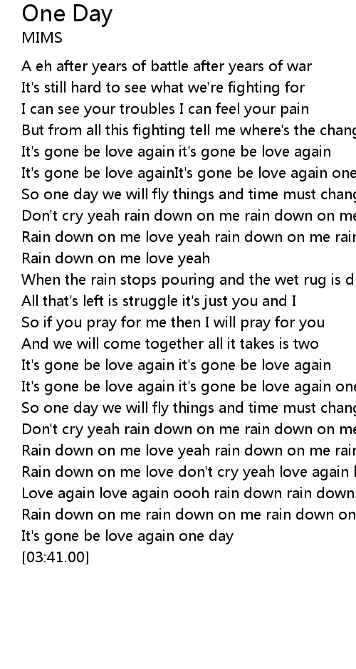 | [03:26.48] | Rain down on me rain down on me rain down on me love |