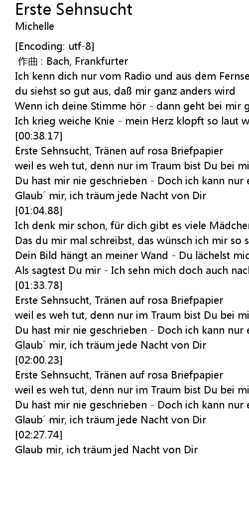 | [02:00.91] | Erste Sehnsucht, Tr nen auf rosa Briefpapier |