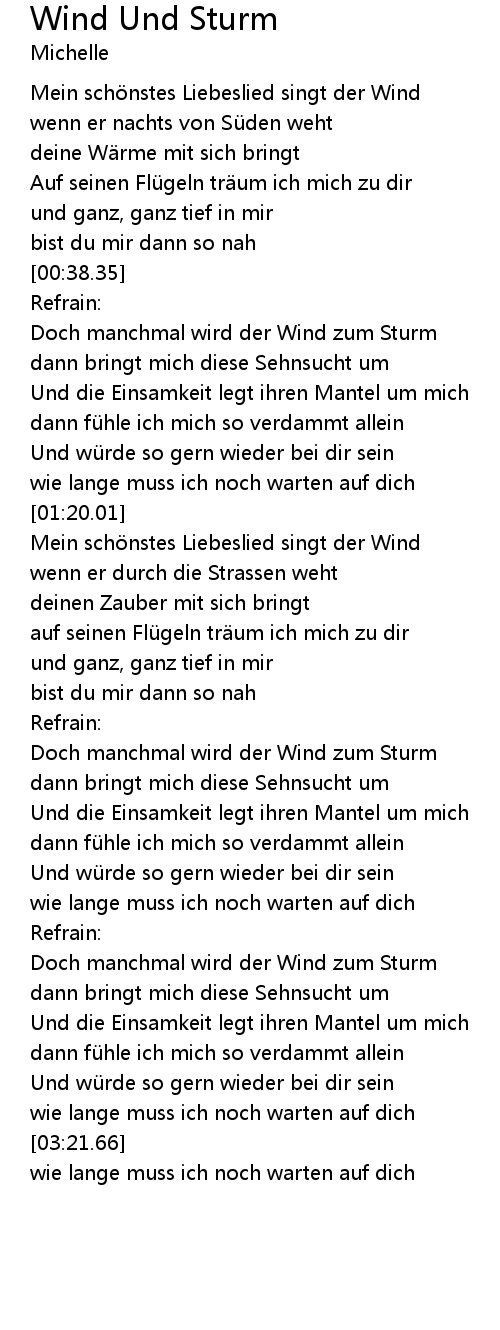 | [01:21.70] | Mein sch nstes Liebeslied singt der Wind |