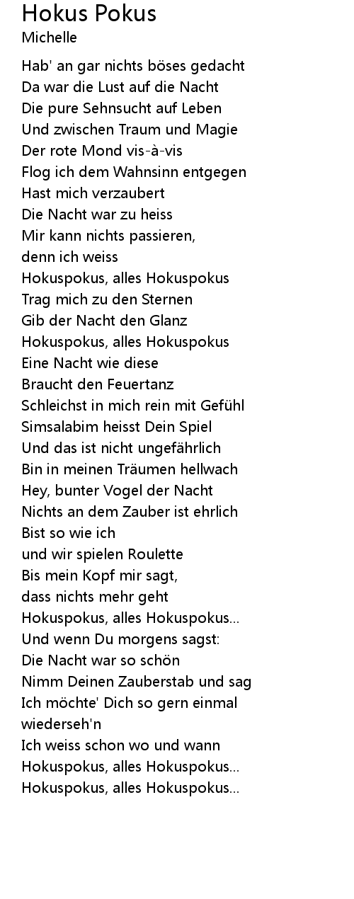 | Hokuspokus, alles Hokuspokus | |
