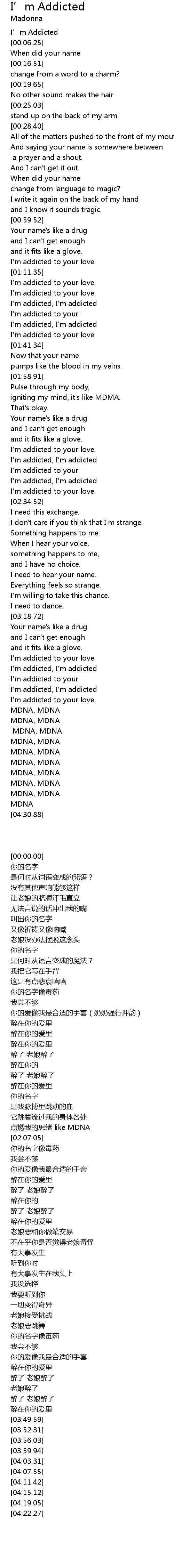 | [01:31.41] | I'm addicted, I'm addicted |