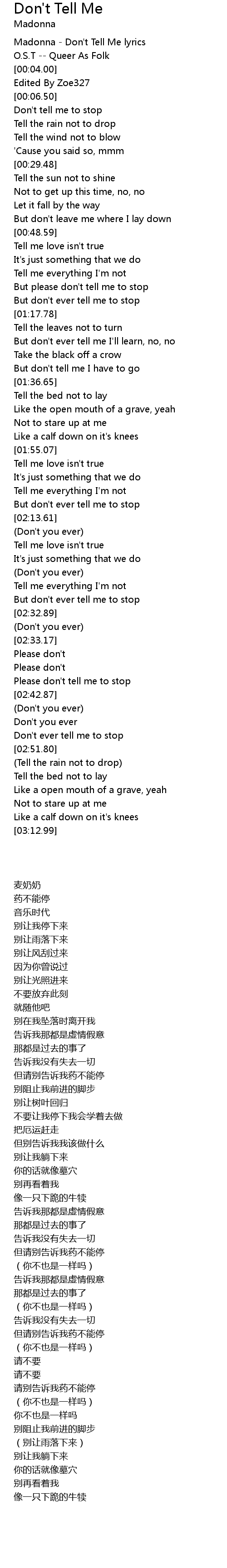 | [00:00.00] | Madonna - Don't Tell Me lyrics |