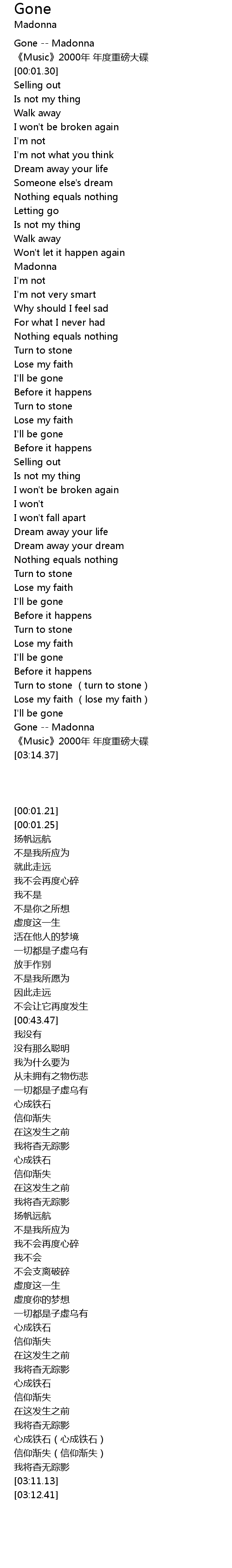 | [03:11.13] | Gone Madonna |