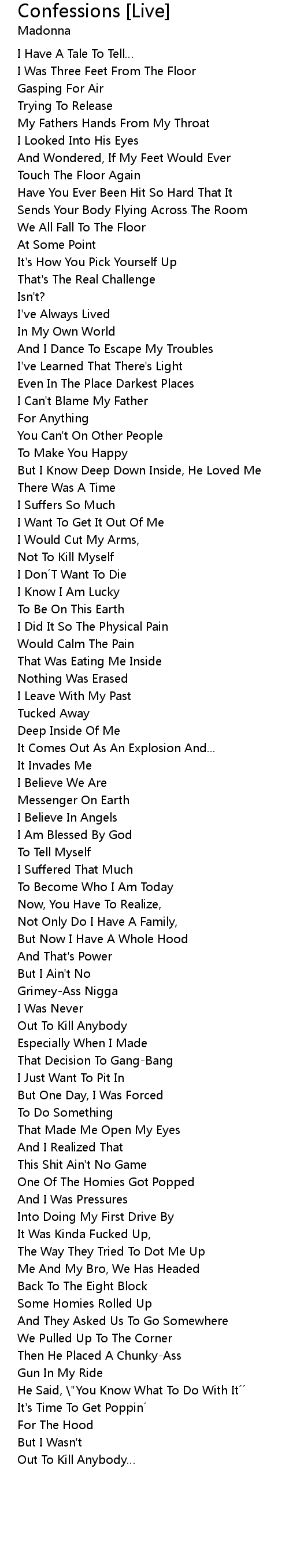| Song | Confessions [Live] |