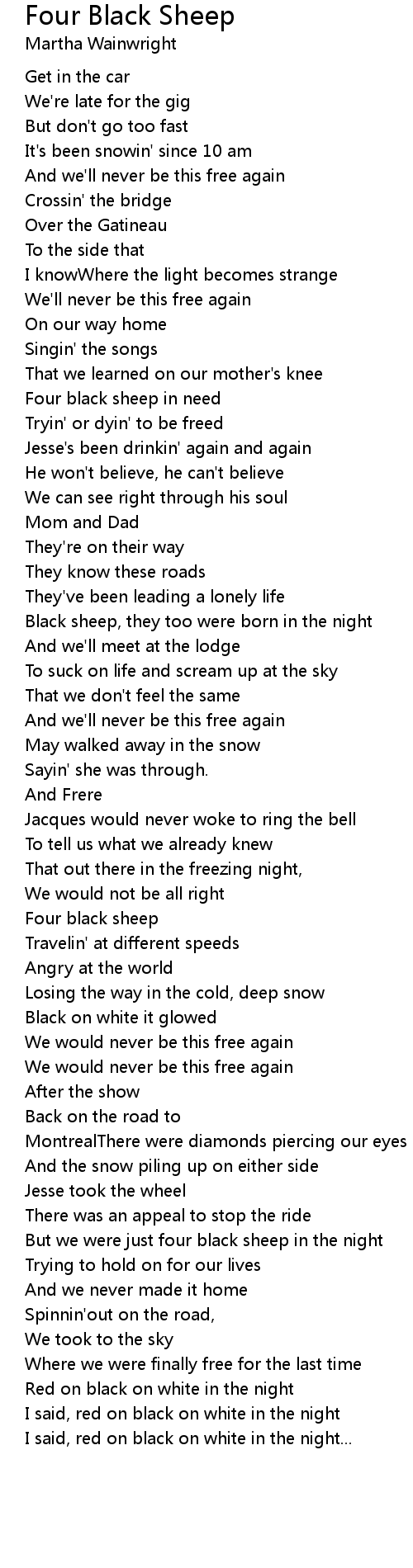 But we were just four black sheep in the night |