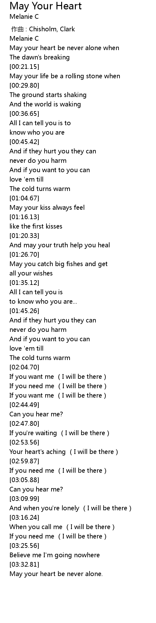 | [00:15.11] | May your heart be never alone when |