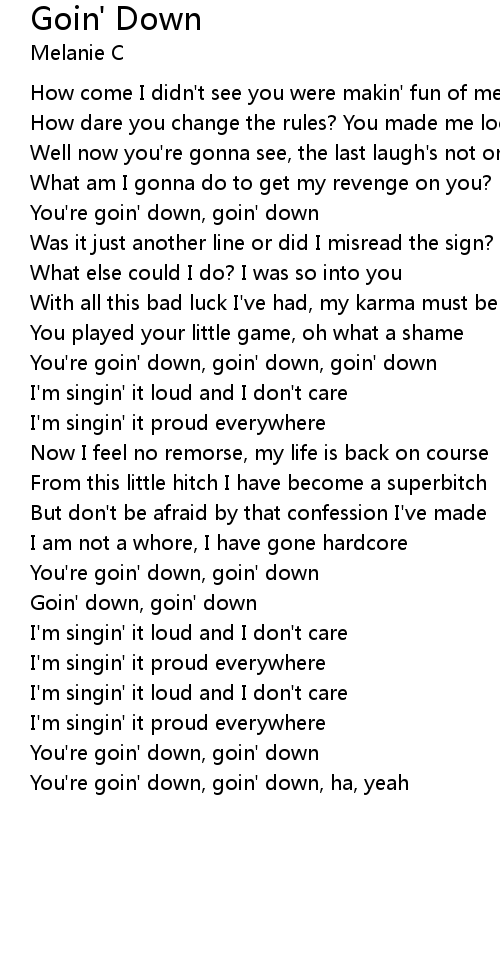 You're goin' down, goin' down, goin' down |