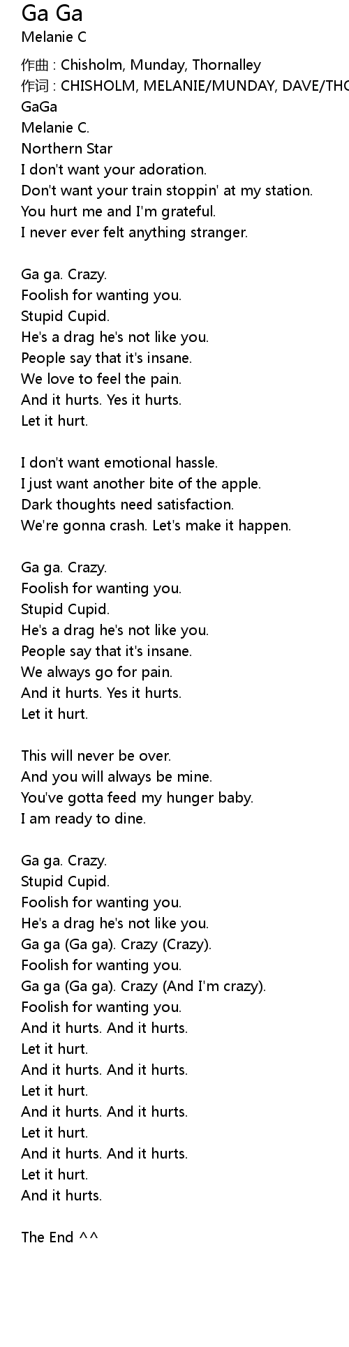 | Ga ga Ga ga. Crazy And I' m crazy. | |