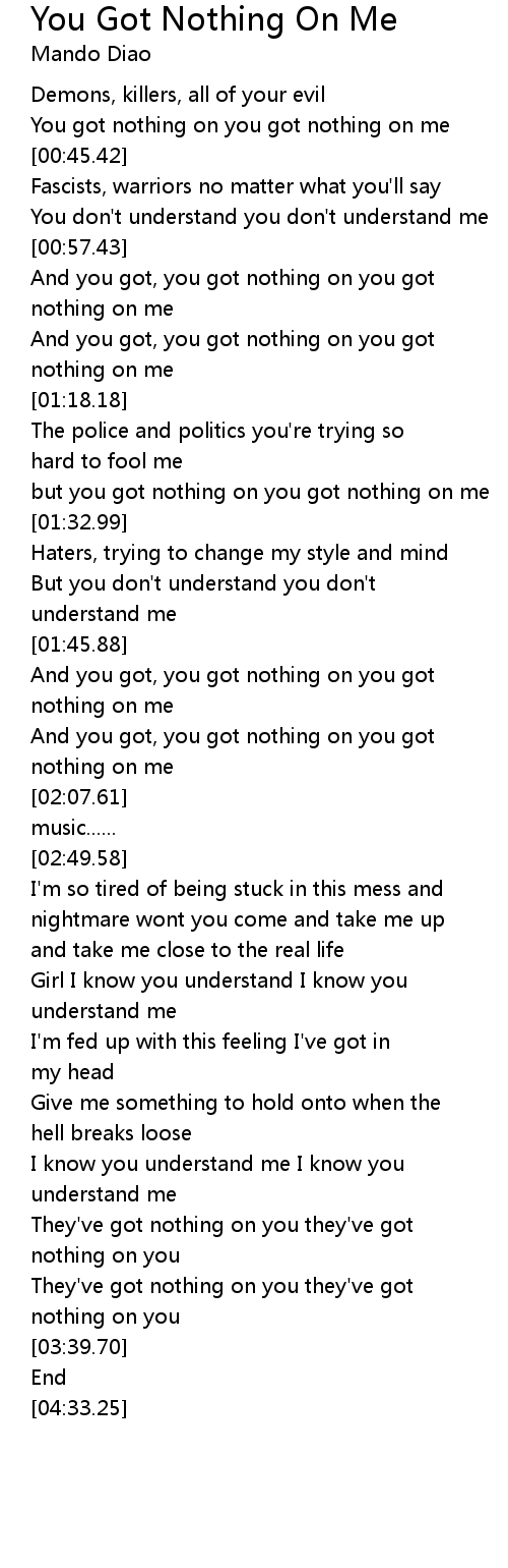 but you got nothing on you got nothing on me |