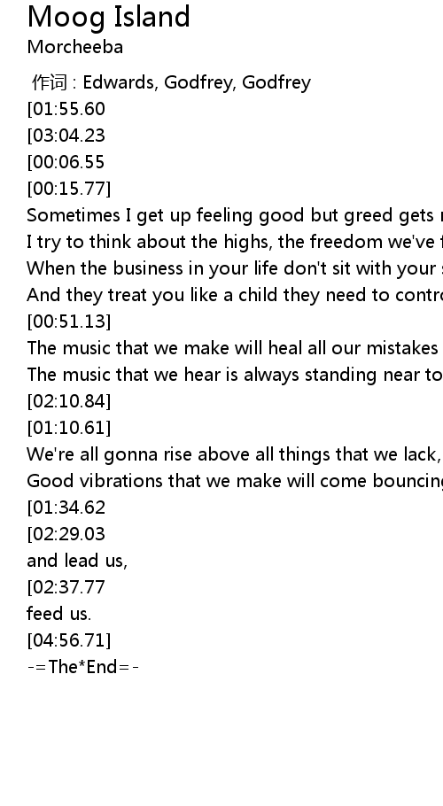 | [03:07.46][01:55.60][00:00.00] | Morcheeba Moog Island |