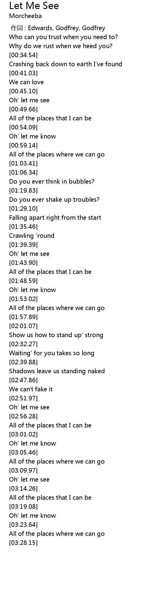 | [00:00.00] | 作词 : Edwards, Godfrey, Godfrey |