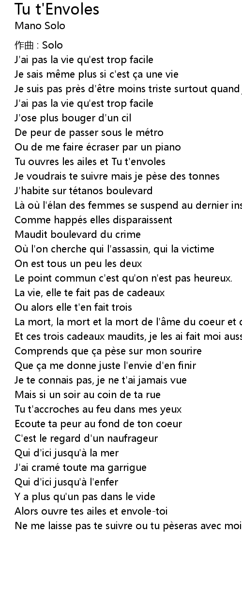 | Song | Tu t'Envoles |