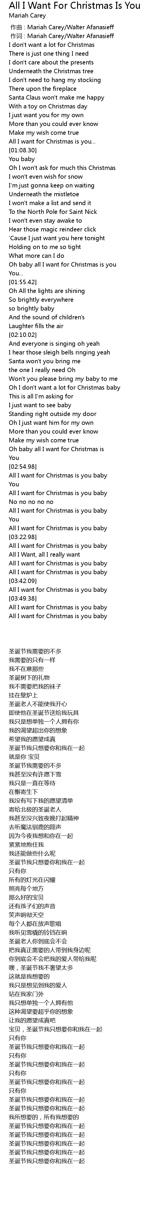 | [01:47.80] | Oh baby all I want for Christmas is you |