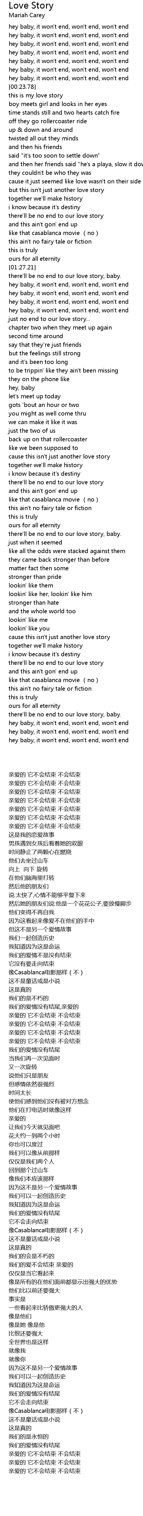 | [01:34.10] | hey baby, it won' t end, won' t end, won' t end |