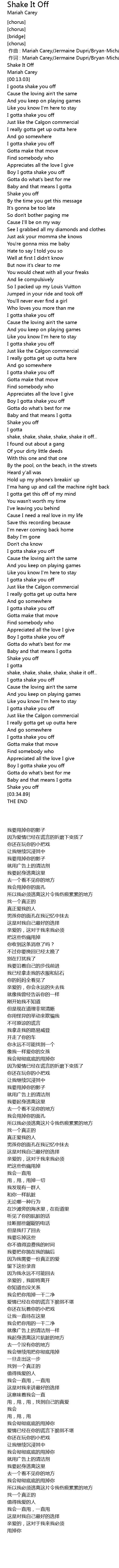 | [03:33.14] | Shake you off |