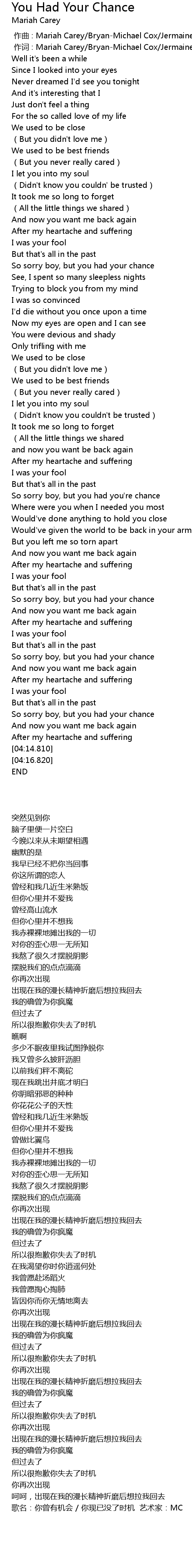 | [02:40.560] | So sorry boy, but you had you' re chance |